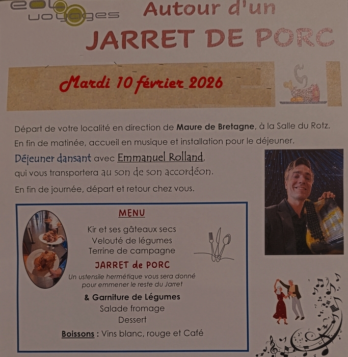JARRET     Jarret de porc à Maure le 10 février (inscriptions avant le 16 janvier 26)